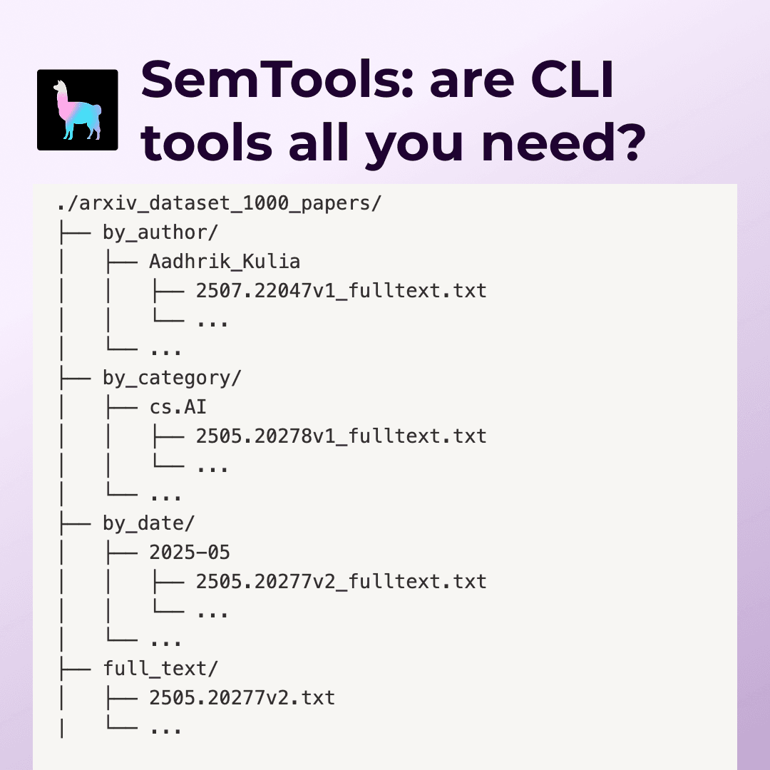 LlamaIndex introduces SemTools, a CLI toolkit that enhances coding agents like Claude Code with semantic search capabilities. Testing on 1000 ArXiv papers showed that combining Unix tools with semantic search significantly improves document analysis accuracy and detail compared to traditional grep-based approaches, making CLI-based agents a powerful alternative to custom RAG implementations.