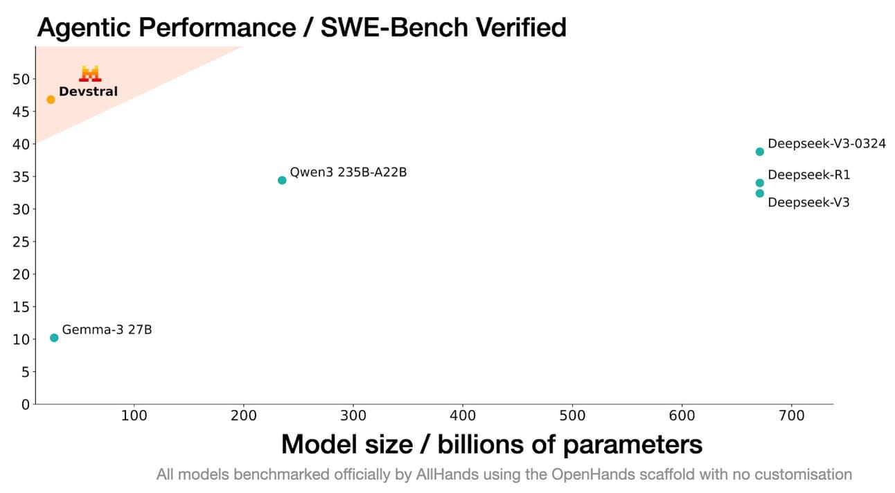 Mistral AI has launched Devstral, an Apache 2.0-licensed LLM specifically designed for software engineering tasks. Running on consumer hardware like RTX 4090 GPUs, it outperforms larger models on the SWE-Bench Verified benchmark and excels at solving real-world GitHub issues. Available through API or self-deployment options.