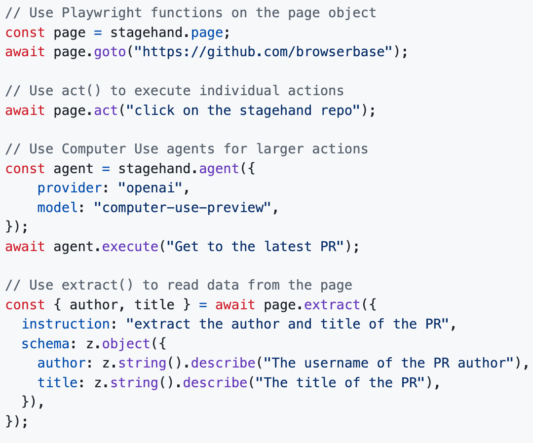 Stagehand is a new open-source framework that combines AI with traditional browser automation, letting developers choose when to use natural language versus code. Unlike pure AI agents or low-level tools like Selenium, it integrates computer use models from OpenAI and Anthropic with one line of code. The framework offers preview and caching of AI actions, built on Playwright for reliability, and supports multiple LLM providers including Groq.