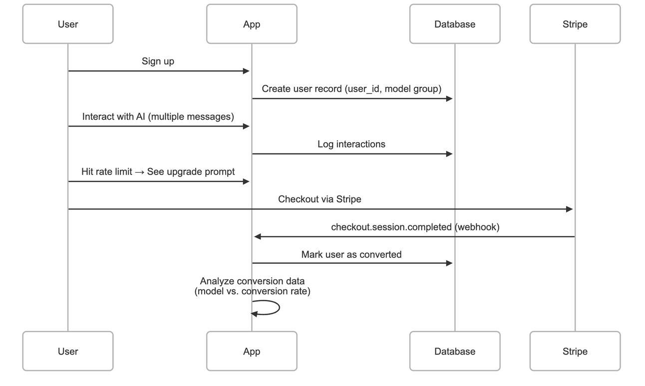 This guide demonstrates how startups can use A/B testing and Stripe conversion data to evaluate LLM performance. HyperWrite's case study shows how they successfully switched to GPT-4.1, maintaining conversion rates while reducing costs, offering practical insights for developers building AI-powered applications.