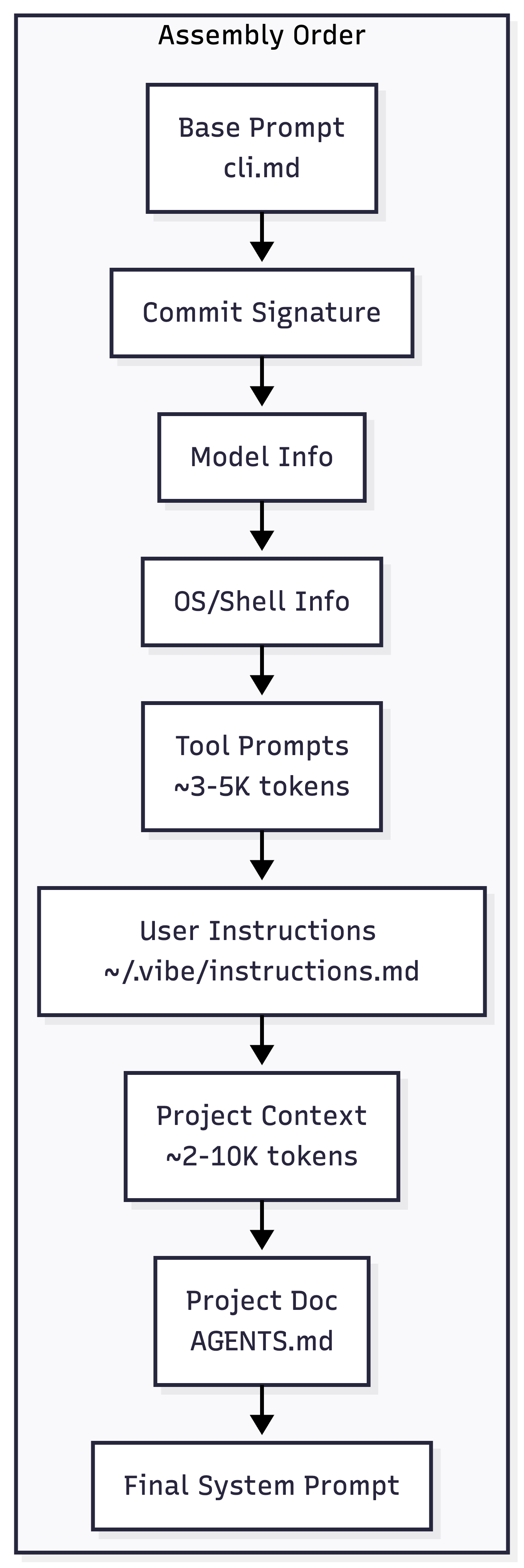 The system prompt is where Vibe’s behavior is defined. Understanding how it’s assembled helps you customize effectively and manage token costs.