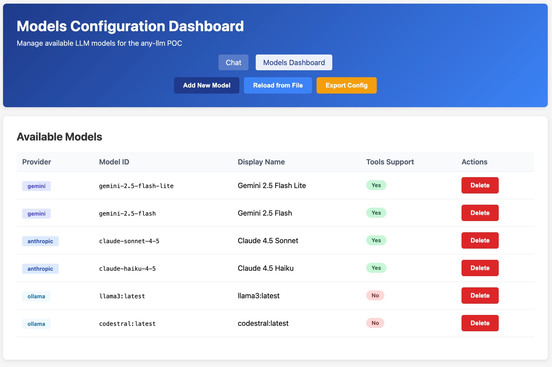 I built a functional research POC (available on GitHub) with a simple web UI for switching between configured providers and models. My analysis focused on two questions: