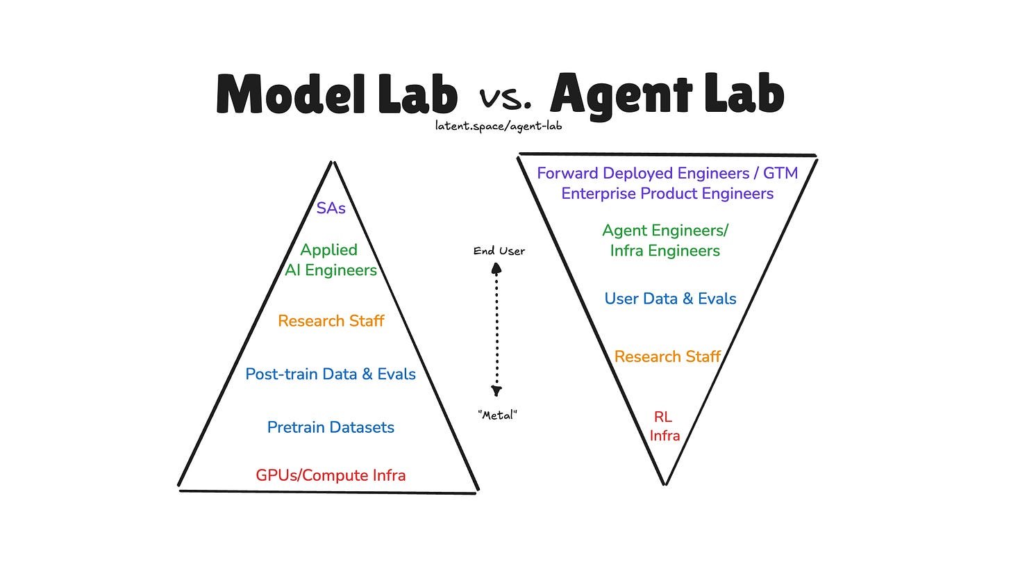 Latent Space articulates the distinction between Agent Labs and Model Labs, analyzing companies like Cursor ($29B), Perplexity ($20B), and Cognition ($10B). Agent Labs build product-first, using foundational models as infrastructure. The thesis explores why the next AI giants may never train a model from scratch.