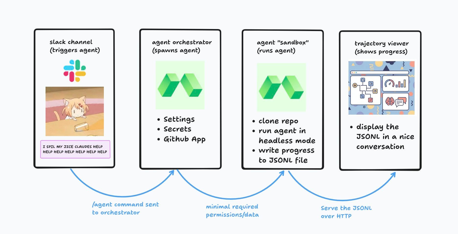 Taking guidance and oversight to the agent level, modern LLMs now support genuinely useful background agents. This architecture uses Modal for orchestration, ephemeral GitHub tokens, and sandboxed execution. The bottleneck has shifted from capability to task description.