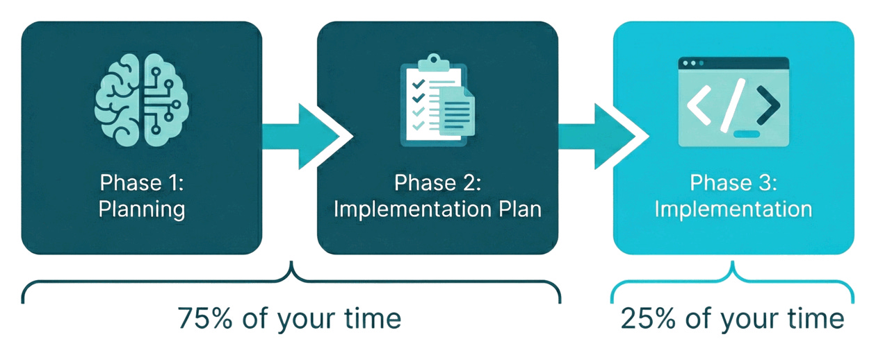 Randal Olson, Ph.D., argues that planning should consume 75% of your AI coding workflow, with implementation just 25%. His three-phase approach shifts heavy thinking to high-reasoning models while fast, cheap models handle execution. When coding gets difficult, it signals planning needs strengthening.